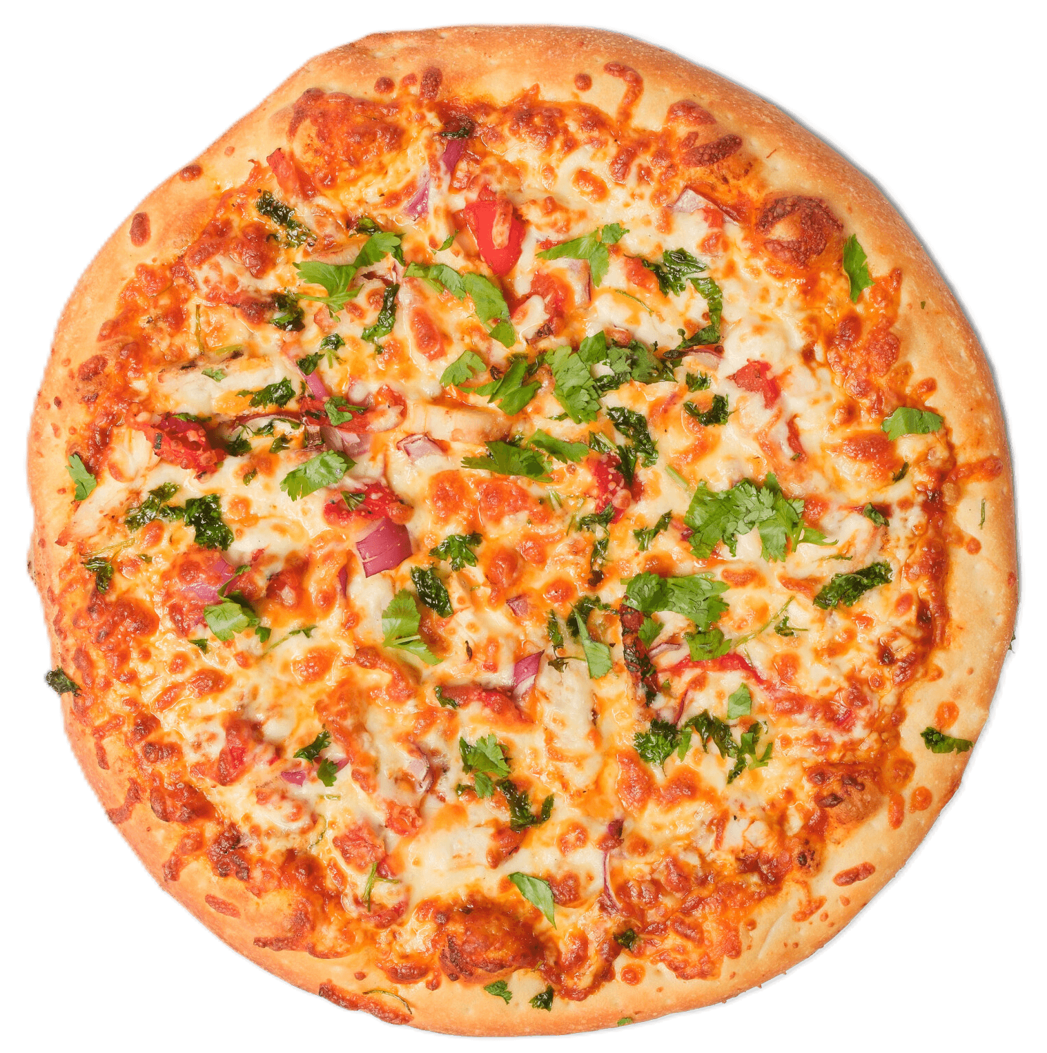 Indulge in the rich and creamy flavors of India with our Butter Chicken Pizza! Topped with tender pieces of marinated chicken, smothered in luscious butter chicken sauce, and layered with melted mozzarella cheese, this pizza is a perfect blend of savory, creamy, and cheesy goodness. Each bite delivers a comforting, flavorful experience that brings the taste of your favorite Indian dish straight to your pizza slice!