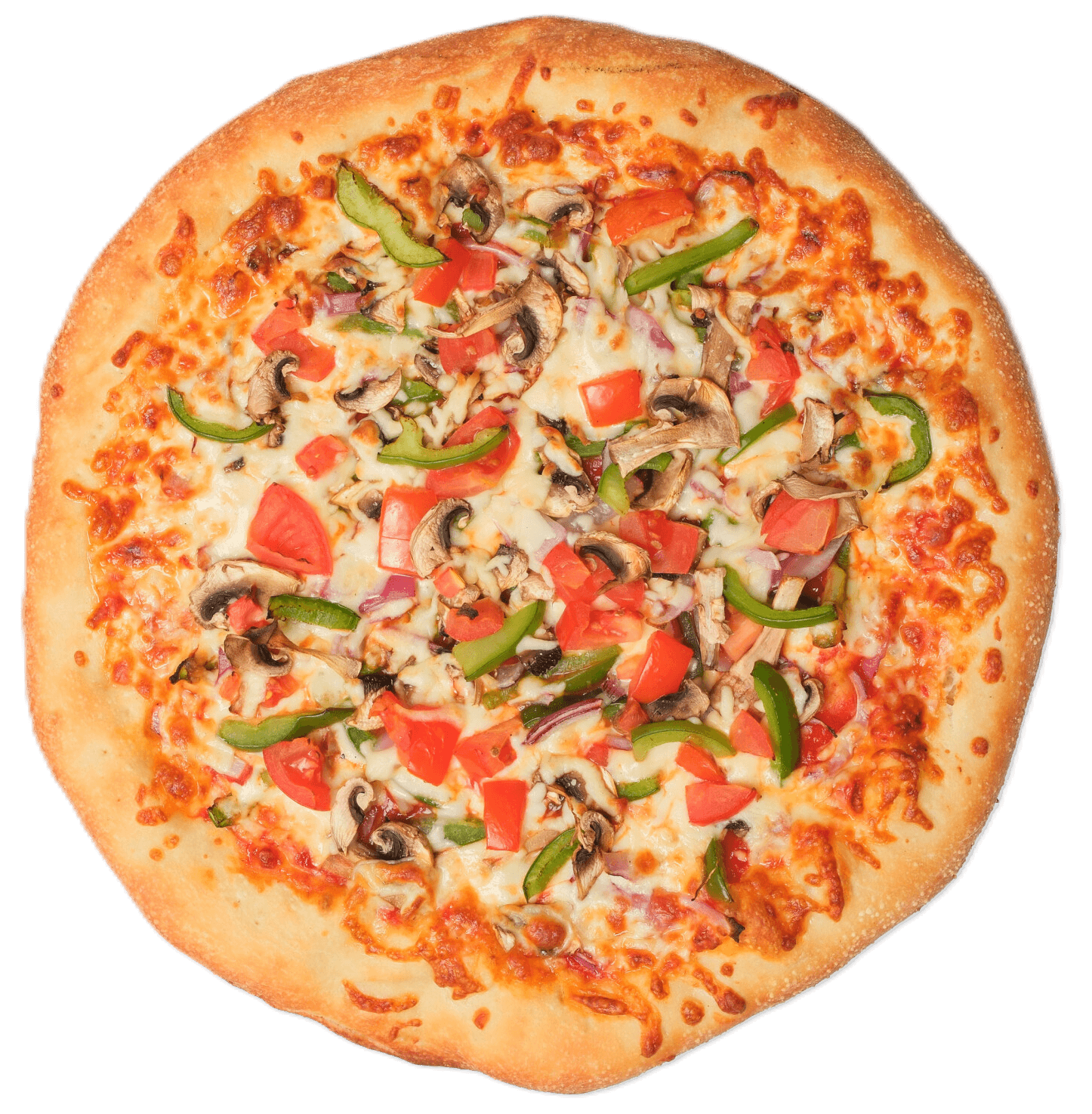 Indulge in a fresh and flavorful veggie delight with our Veggie Lover Pizza! Packed with a vibrant mix of garden-fresh vegetables, including crisp bell peppers, juicy tomatoes, sweet corn, onions, black olives, and mushrooms, all layered on a rich tomato sauce and a golden baked crust. Finished with melted mozzarella, this pizza delivers the perfect balance of cheesy, colorful, and wholesome goodness in every bite.